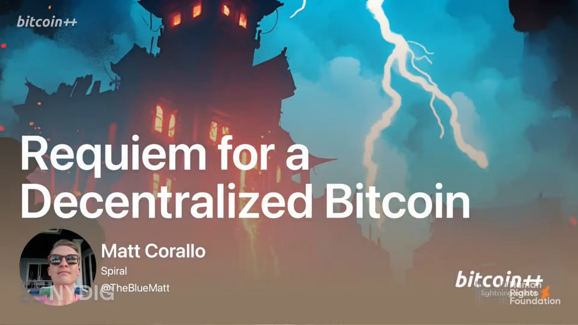 Important talk by @Matt Corallo about the snowballing centralization risk around custodial lightning.