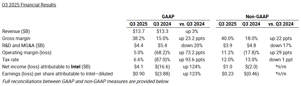 Been making moves in portfolio, will try to report tomorrow. Just a quick one on $INTC: Q3 with notable improvement in execution, margins.