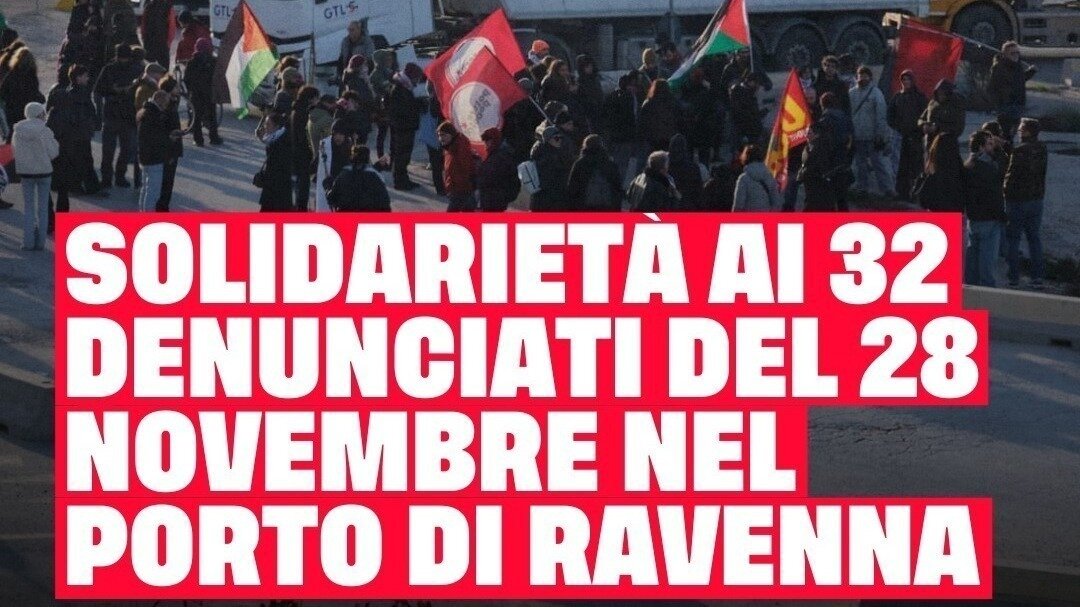 Abbiamo appreso dalla stampa che 32 persone sono state denunciate per il blocco di due ore del traffico nel porto di Ravenna, il 28 novembre scorso, in occasione dello sciopero generale indetto dai sindacati di base.
