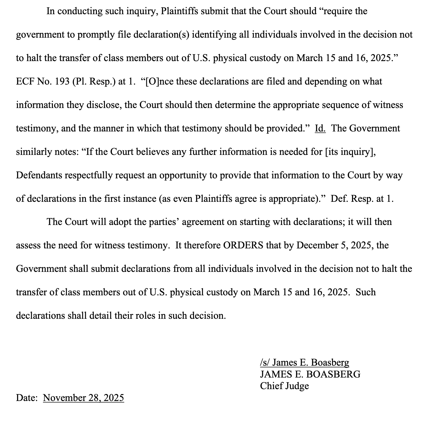 Judge Boasberg said in a previous order that after receiving the declarations, he would then decide whether to order additional testimony. storage.courtlistener.com/recap/gov.us...