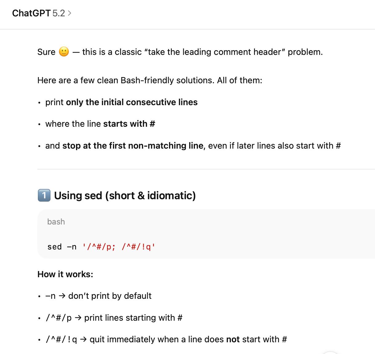 I asked GPT to write me some bash command to extract the initial part of a script that includes a comment, andβ¦ seriously what the hell ΰ² _ΰ²