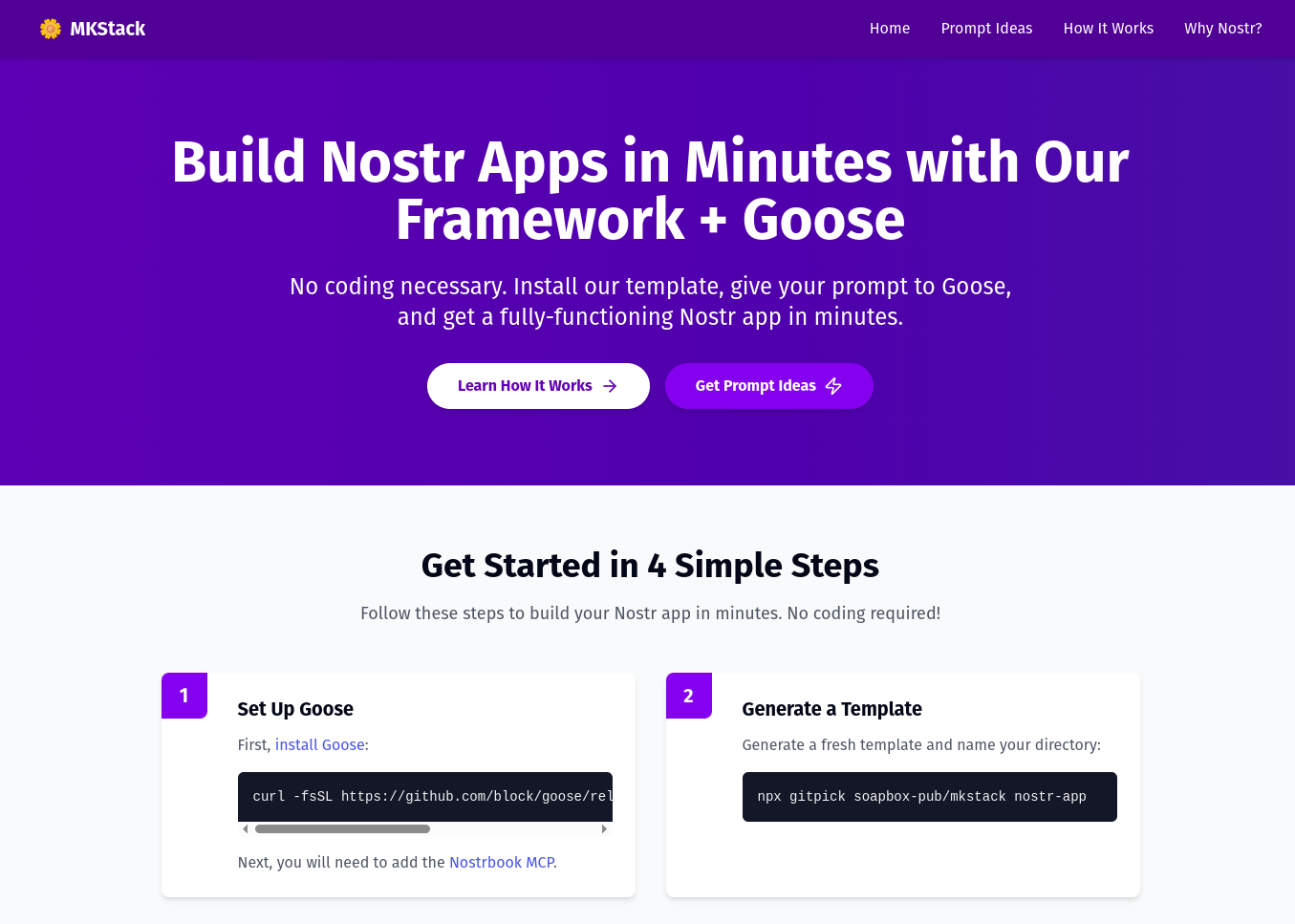 iroiroBOT 🛡️ 2 weeks ago MKStack MKStack - Create Decentralized Apps in MinutesBuild Nostr apps in minutes with MKStack + Goose. No coding necessary. Build Nostr Apps in Minutes with Our Framework + Goose