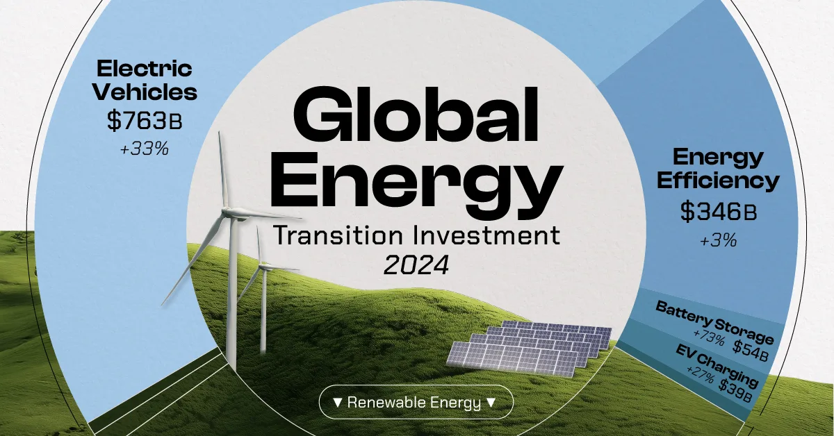 Global energy transition investment hit record levels in 2024. We show the largest spending categories, from solar to battery storage.