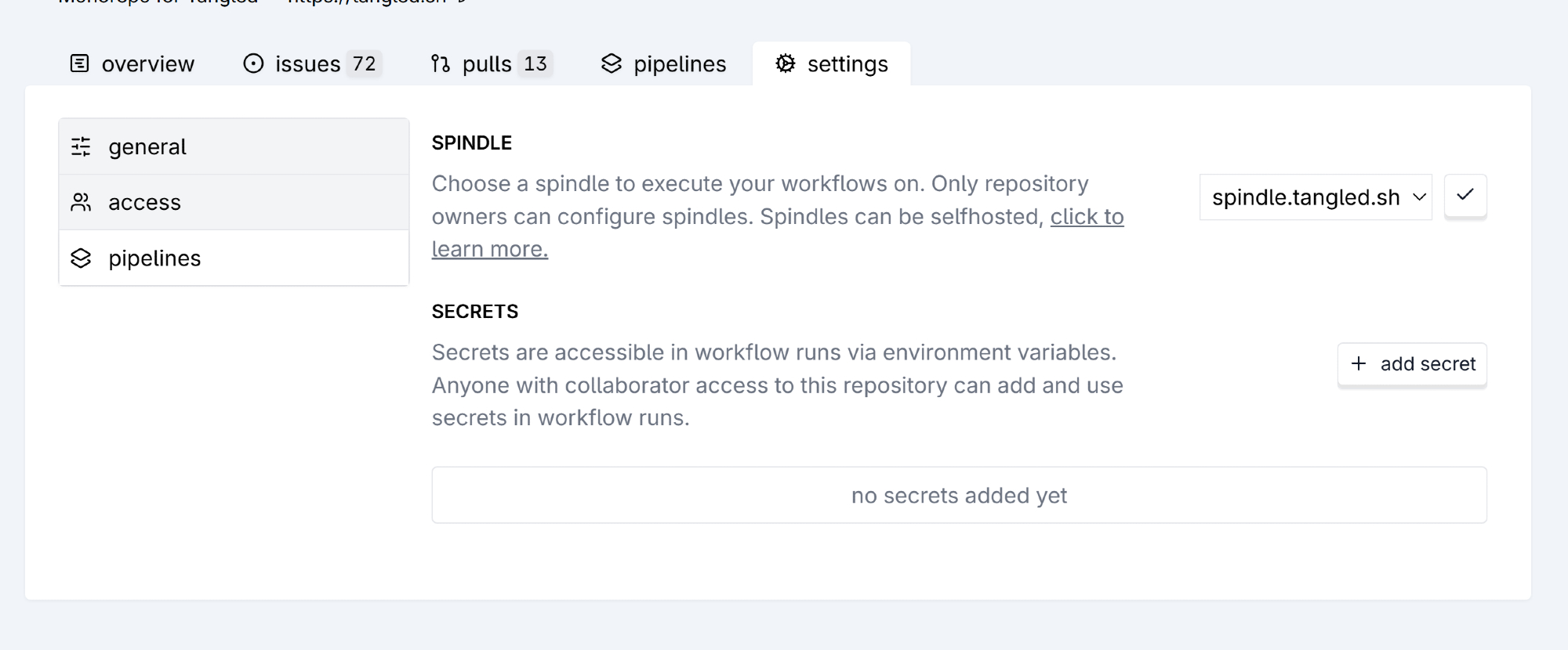 buckle up tanglers, we've been working hard! first up: ✨CI is now generally available!✨ head to your repo settings and set your workflow runner to the hosted instance. 🚀 we have also got support for secrets! you can now deploy your site on CI! read the blog for more: [blog.tangled.sh/ci]( ) 1/5 https://oysterling.us-west.host.bsky.network/xrpc/com.atproto.sync.getBlob?did=did:plc:wshs7t2adsemcrrd4snkeqli&cid=bafkreiev34o2crfmwhsdui6by552vy3e2kzkm3qgo6i2w64gtrnm6m7d3a