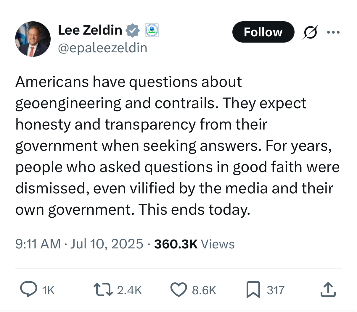 Americans have questions about whether the Earth is round. They expect honesty and transparency from their government when seeking answers. For years, people who asked questions in good faith were dismissed, even vilified by “the media” and their own “government”. This ends today.