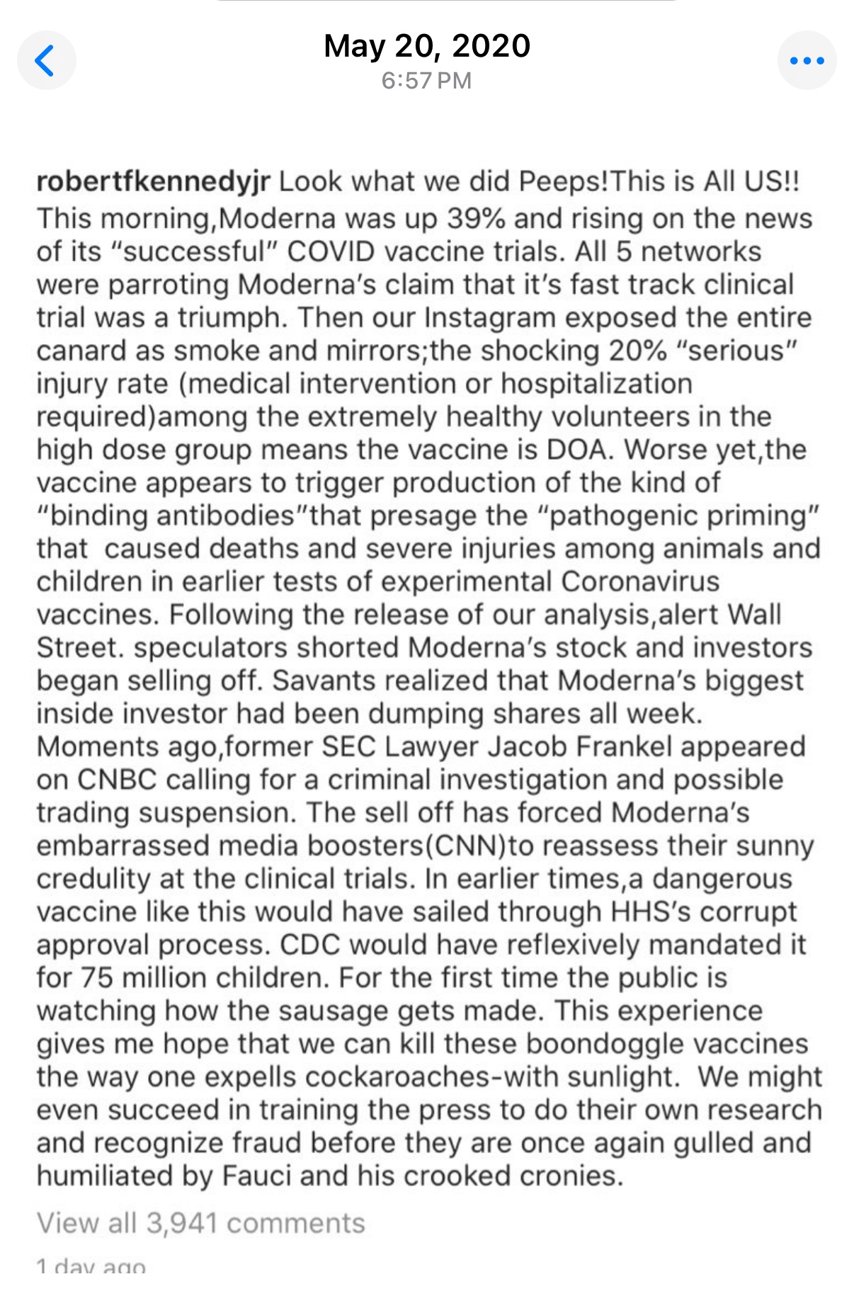 Before he rebooted his Instagram account to look presidential, this was RFK Jr during COVID.