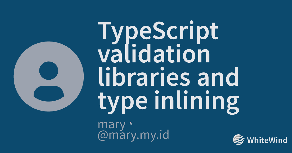 mary🐇 8 months ago i've not gotten around to writing my own lexicon for blog posts so here's a whitewind post on what i had to do recently [whtwnd.com/mary.my.id/3lo…](TypeScript validation libraries and type inlining | mary🐇one of the best things to emerge from the TypeScript ecosystem has been the plethora of validation libraries like Zod or Valibot. these libraries a... ) [TypeScript validation librarie...](TypeScript validation libraries and type inlining | mary🐇one of the best things to emerge from the TypeScript ecosystem has been the plethora of validation libraries like Zod or Valibot. these libraries a... )