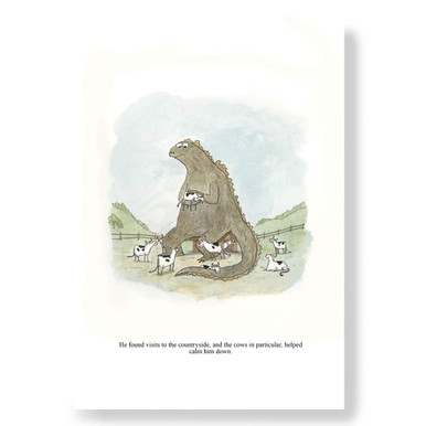Grickle 6 months ago Brand new "Countryside Chill" print available at gricklemart.com! Put some relaxation on your walls! GricklemartCountryside ChillThe smell of farms and the sounds of gentle mooing were the things that soothed him best! Add this calming scene of a big monster relaxing with co... #grickledoodle #prints #kaiju #relaxation #cows #country #cartoon #art #drawing #funny