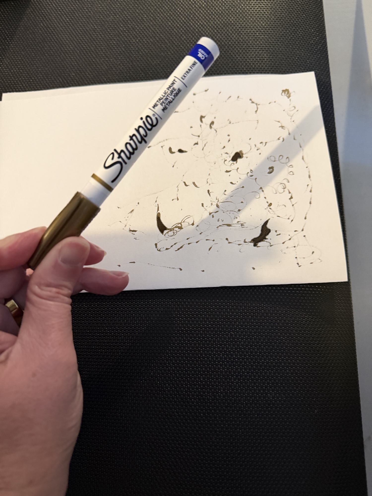 Anyone have a good *extra fine tip, permanent* gold pen they like? Anything else that will show up on black reliably?