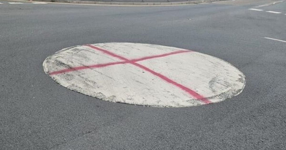They had sprayed red crosses on our (white circular road markers) mini roundabouts and were climbing the public lamp posts to attach flags.