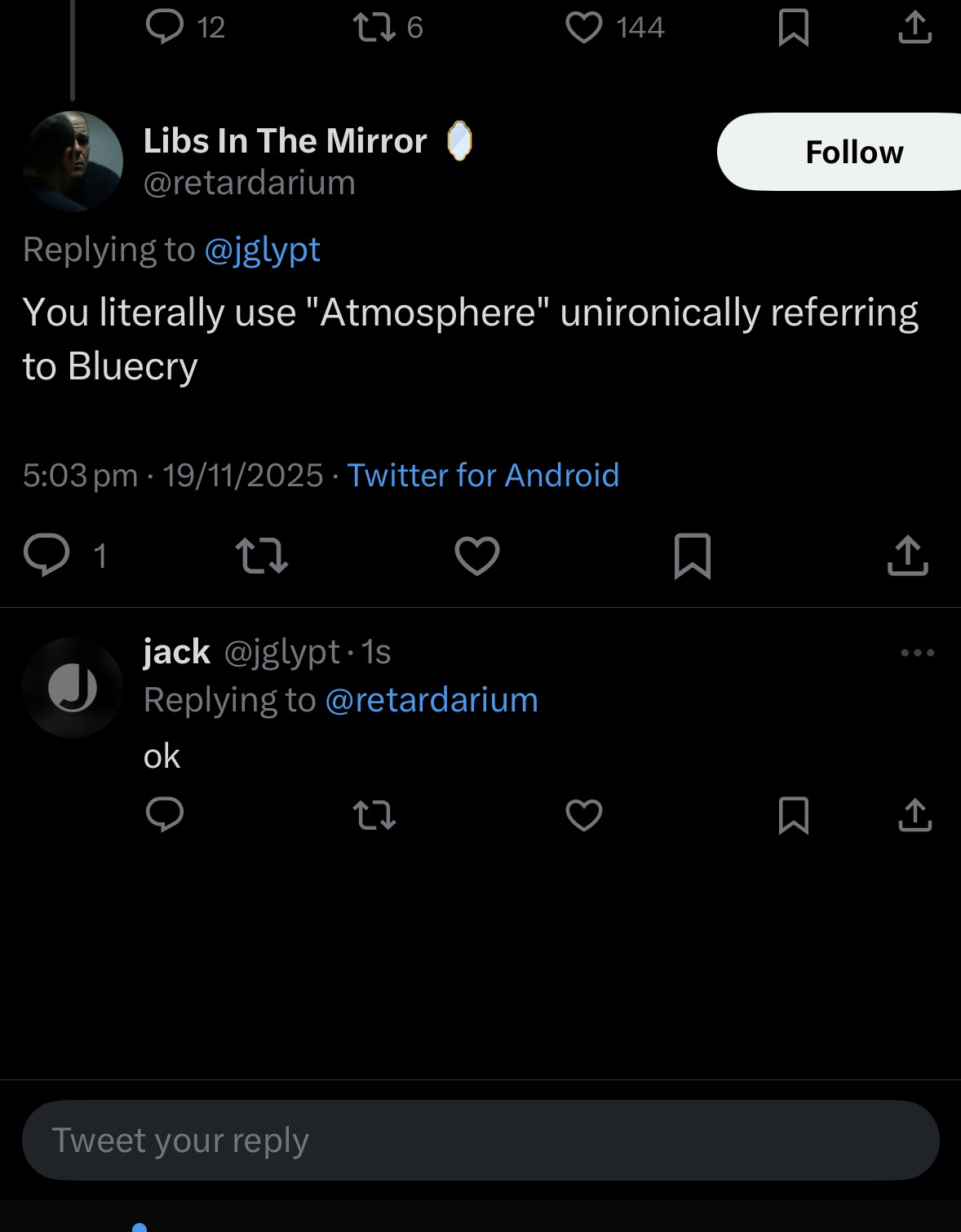 jack 2 months ago bluesky should have a shitposter but instead of posting shit, they just post especially those with Large Alter Egos