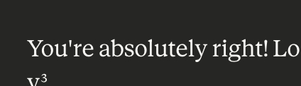 jack 1 week ago the amount of times we have taken the piss of "You're absolutely right!" makes it weird to see every time I get it back from Claude now 😭 https://pds.j4ck.xyz/xrpc/com.atproto.sync.getBlob?did=did:plc:4hawmtgzjx3vclfyphbhfn7v&cid=bafkreiedwx3jwwxz3jyw2owts22dn2o4kwuurudlmooxczkinrcsjvgktu