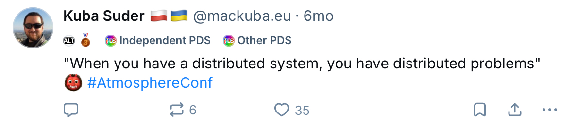 Huh⦠(this message means the AppView doesn't return the post at all; post is still accessible on the PDS: [pdsls.dev/at://did:plc...]( ))
