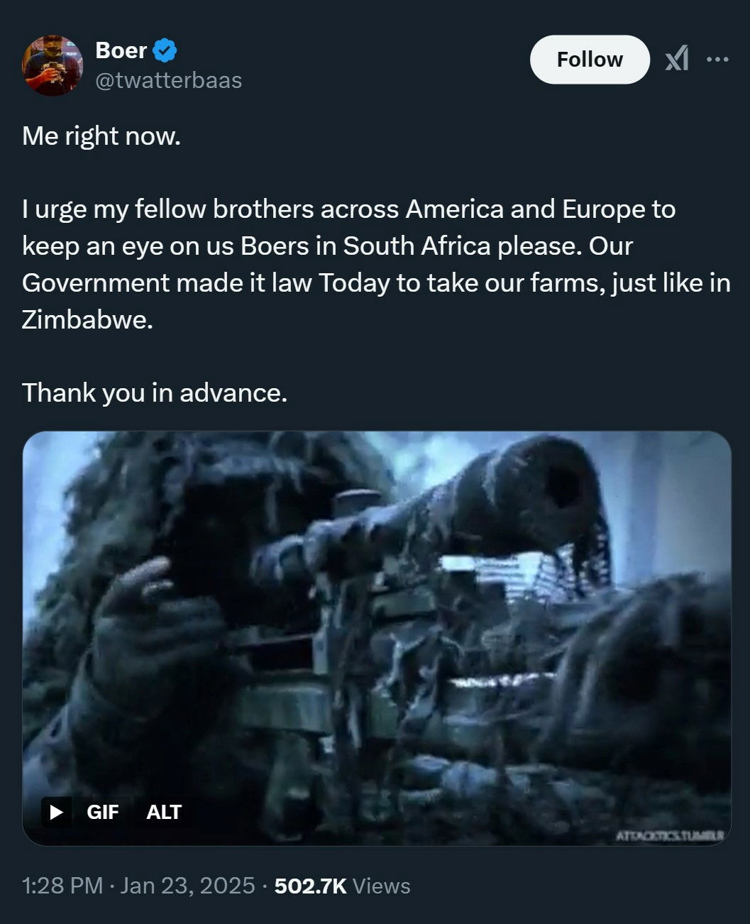 But it looks like this time they're going to. And I have many a White South African brother who have been preparing for this moment for many years. May the Gods be with you, brothers.