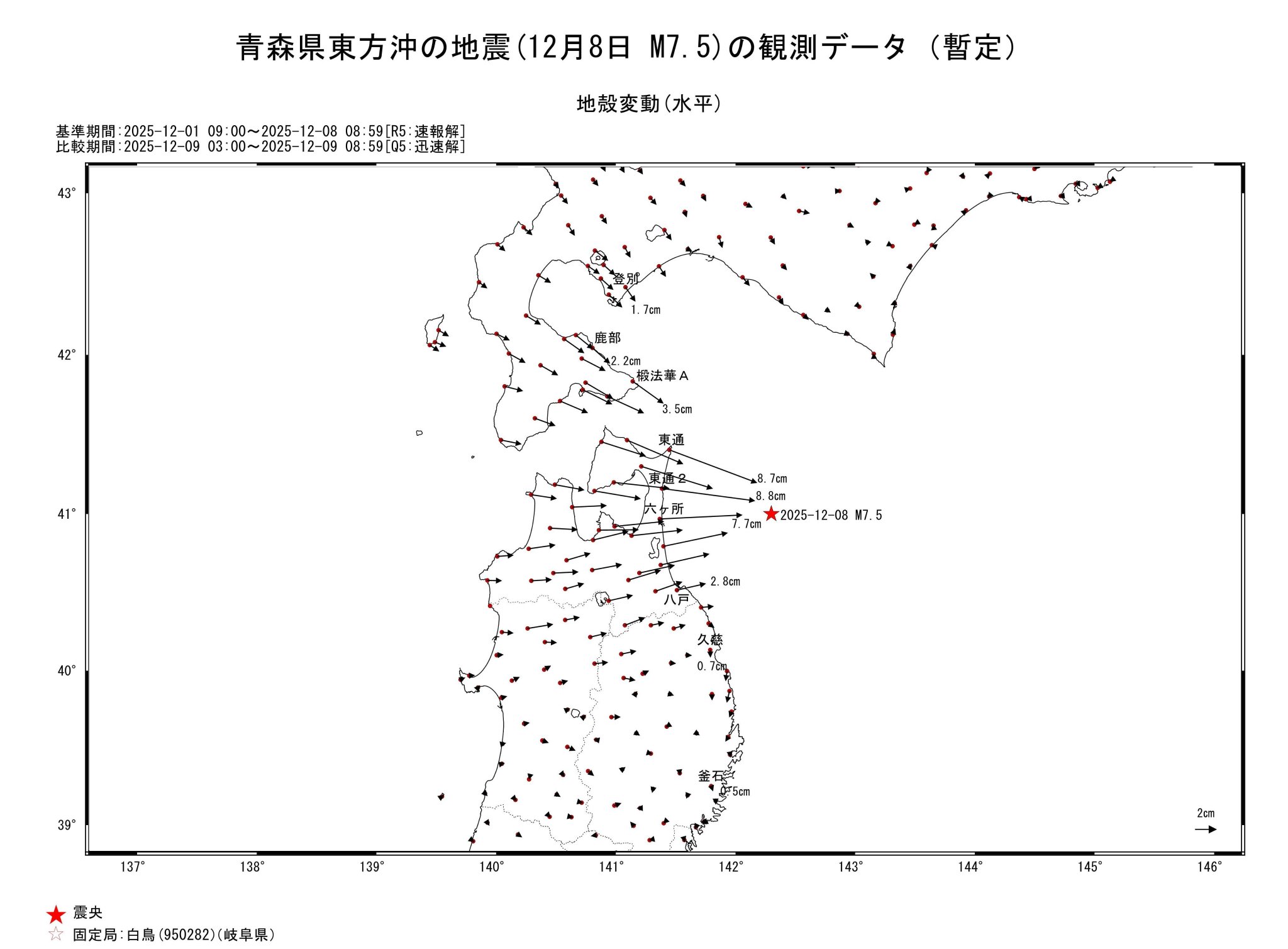 こけAしIねこ 2 weeks ago ヒエ X (formerly Twitter)国土地理院 (@GSI_chiriin) on X令和7年(2025年)12月8日23時15分頃に青森県東方沖で発生した地震に伴い、 #地殻変動 が観測されました。 ▼...