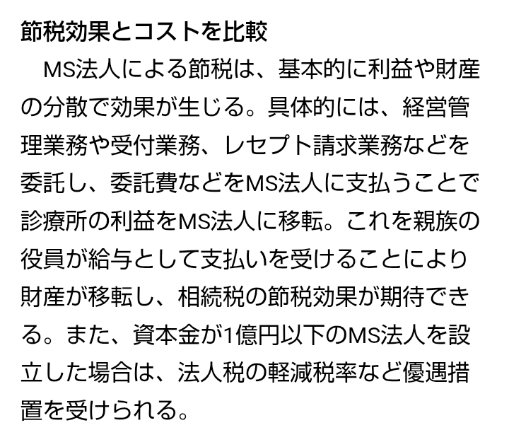 RT by @satobtc: MS法人って、節税云々ではないよね。そもそも、当たり前すぎて忘れてるけど、医療法人って、医療の為の法人で、だから税制優遇やら補助金やらが凄いのよ。そこで蓄財した資産は、医療以外には使えない制約がある。でも、そんな制約は建前で、MS法人を介して、親族株主の会社に流せば、利益移転できるんだよな。これが日本のオルガリ構造です。億単位の政商NPOとかも同じです。