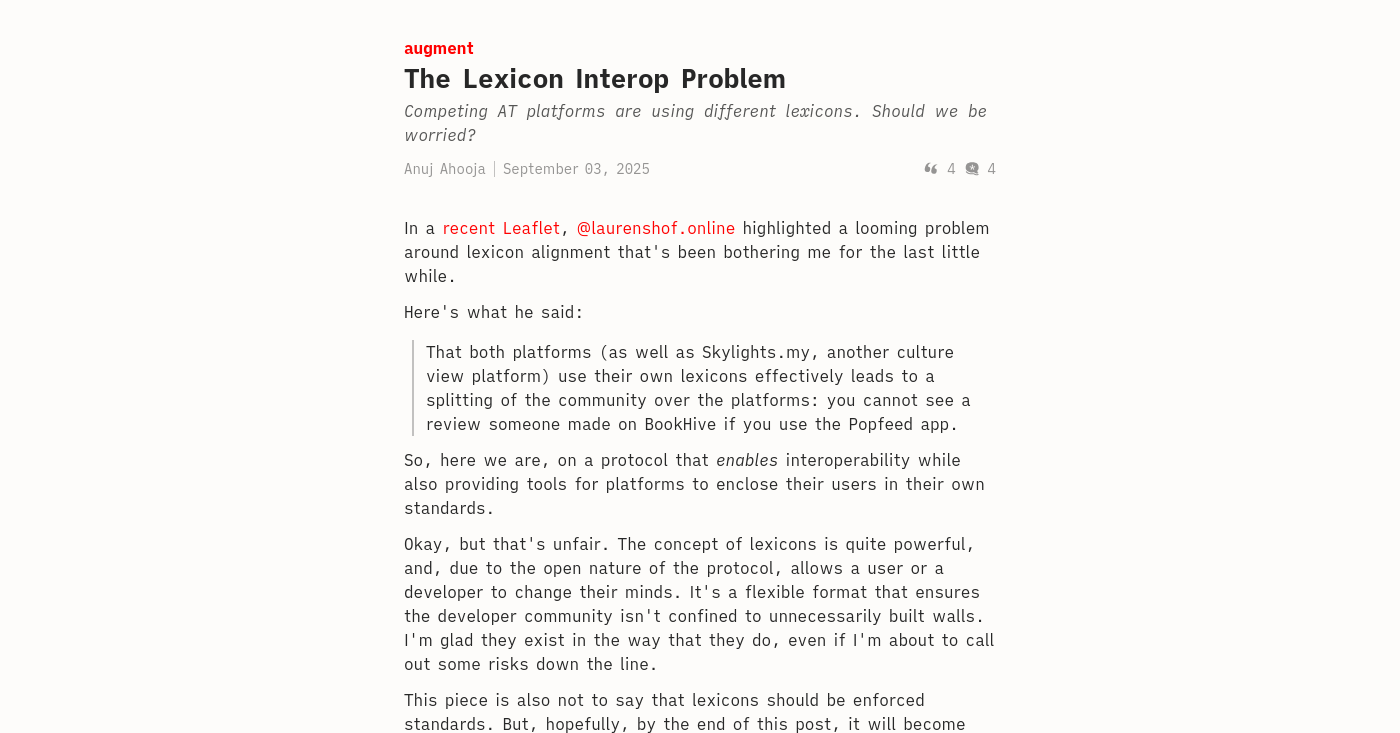 Earlier today, @Laurens mentioned how apps that should interoperate aren't because they're using different lexicons.