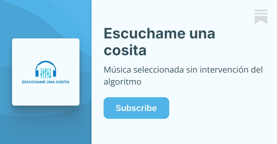 Gabriel 1 year ago Un blog con novedades musicales que se llama Escuchame una cosita. Escuchame una cosita | SubstackMúsica seleccionada sin intervención del algoritmo. Click to read Escuchame una cosita, a Substack publication with hundreds of subscribers. y tiene RSS Escuchame una cosita #musica #rss