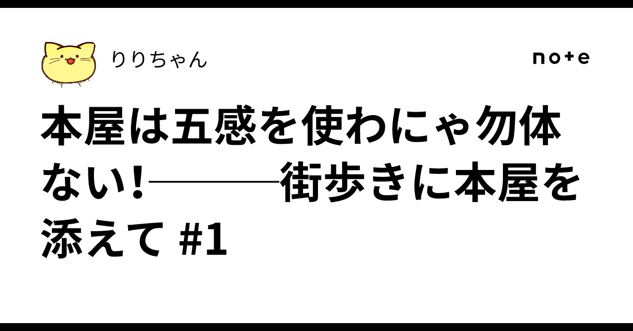 鈴々りり 4 weeks ago 続編を翌年1月〜2月くらいに書くと思います。よかったら見てください note(ノート)本屋は五感を使わにゃ勿体ない!───街歩きに本屋を添えて #1|りりちゃん大体の都市と呼ばれるエリアには少なからず本屋がある。トレンドの新書を扱う本屋から,チェーン展開する...