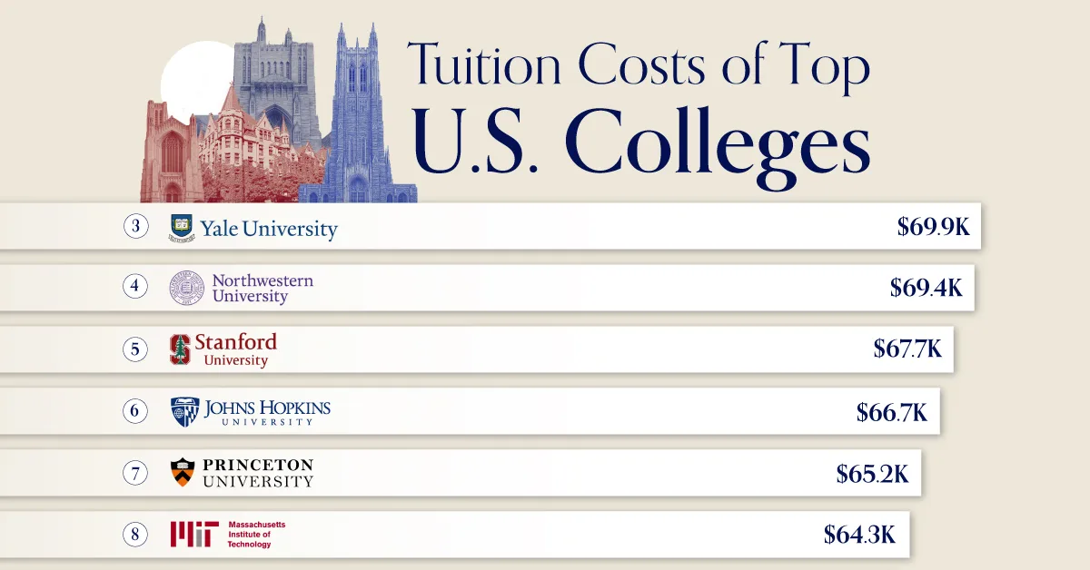 The University of Chicago tops the list, with tuition reaching $71,300. Other elite schools like Duke, Yale, and Stanford also hover near the $70,000 mark. Even Harvard, despite having one of the largest endowments in the world, lists tuition at $59,300.