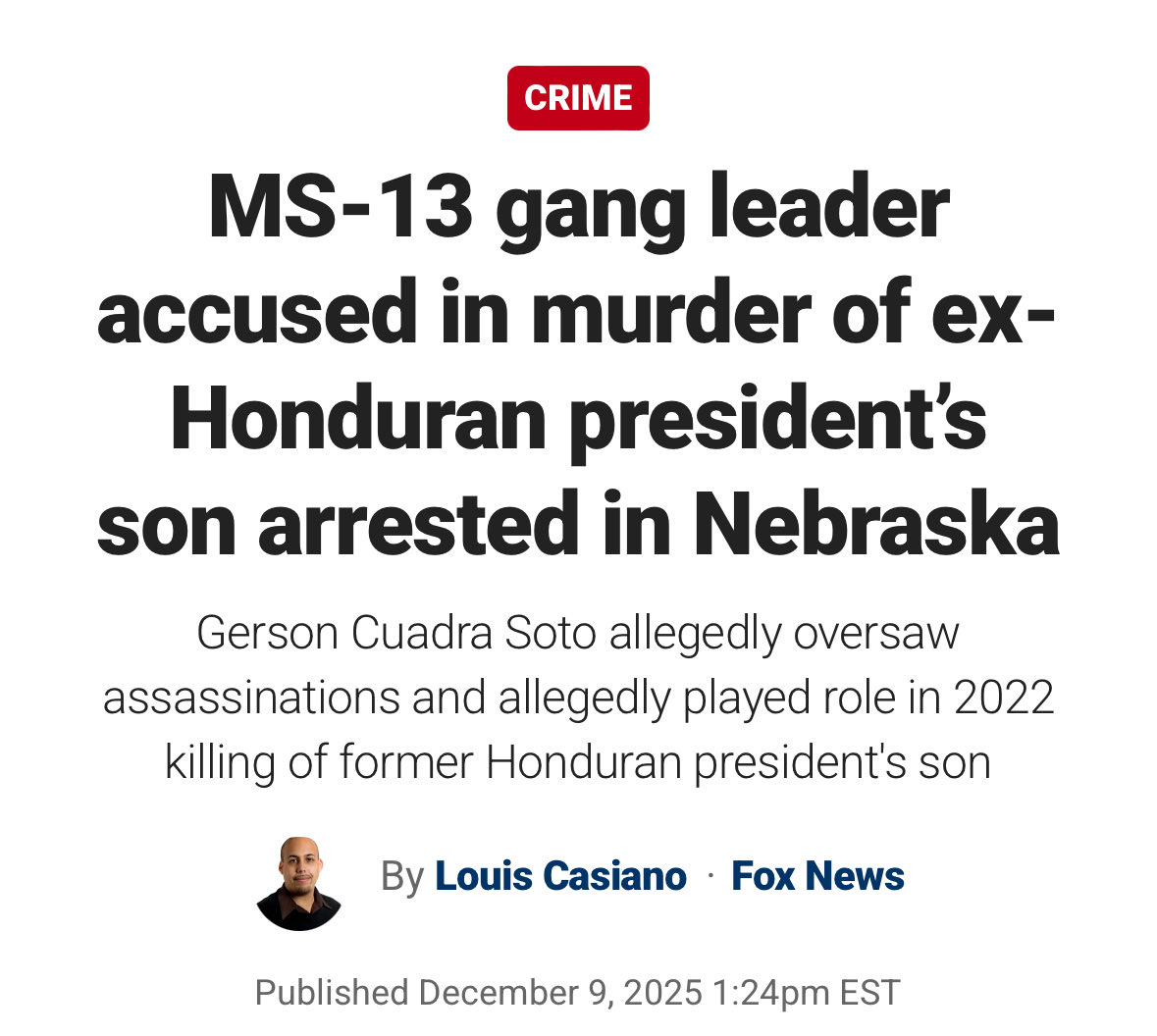 Gerson Cuadra Soto, a Honduran national, “is believed to be responsible for overseeing one of their major kill squad units—and suspected of executing the assassination of the son of the former President of Honduras,” Patel wrote.