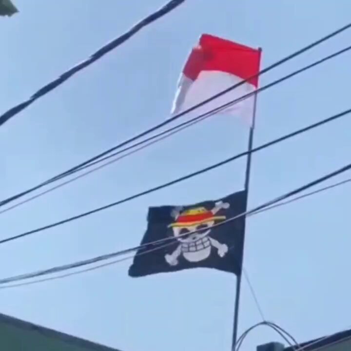 A bandeira dos Piratas do Chapéu de Palha de ONE PIECE presente em diversos lugares da Indonésia como símbolo de protesto contra o atual governo do País. O governo indonésio considera este movimento como um ato de rebelião.