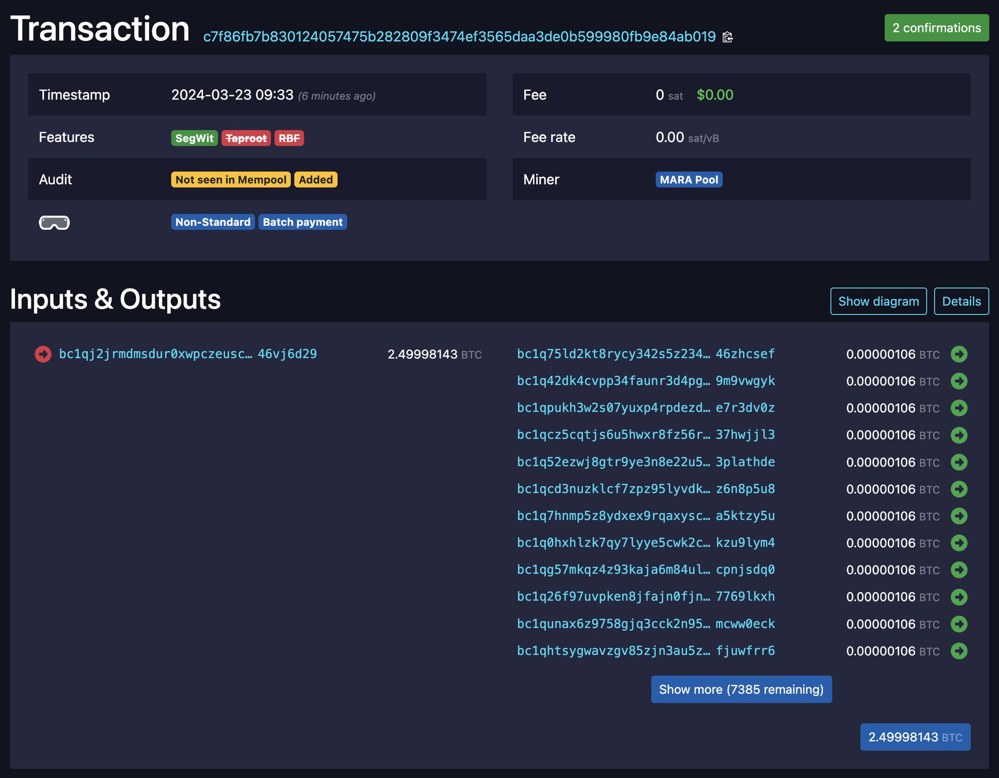 kossie 1 year ago X (formerly Twitter)mononaut (@mononautical) on Xπ§ 229 kvB 7397 outputs of which 4397 below the dust limit https://t.co/MDYPCajqjt MARA μ΄ κ°μμλ€