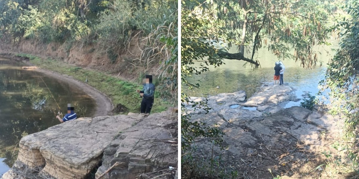 ⚠️O grupo praticava pesca irregular em barranco que fica a menos de 200 metros de corredeiras, área proibida conforme Instrução Normativa do IBAMA.