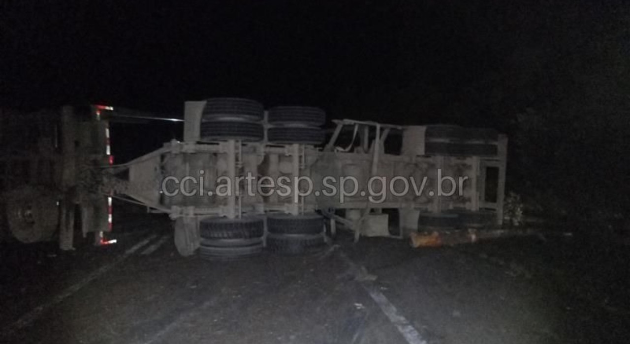 Uma carreta tombou e acabou interditando completamente um trecho da Rodovia Francisco Alves Negrão (SP-258), que liga Capão Bonito (SP) a Itapeva (SP), na noite desta quinta-feira (19).