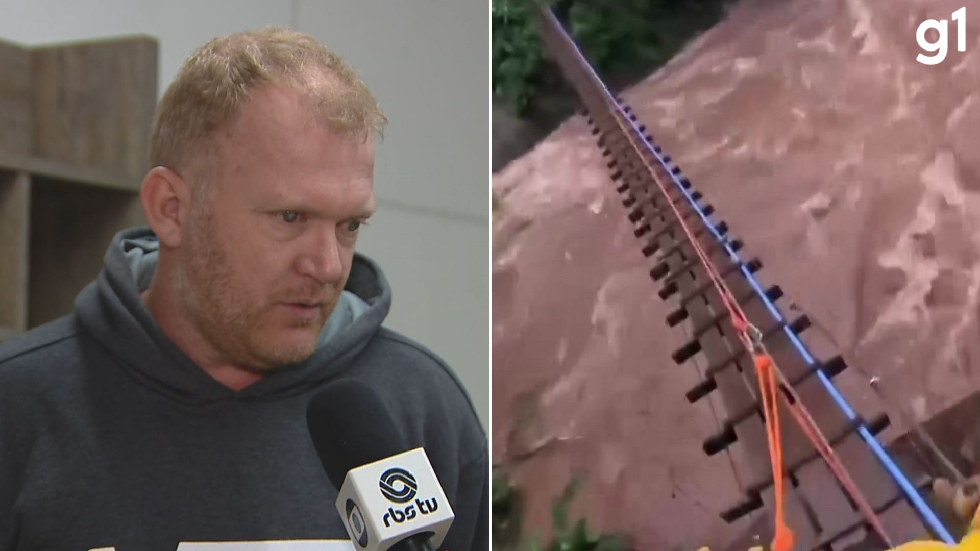 A chuva que atingiu uma área de risco no interior de Caxias do Sul, na Serra do Rio Grande do Sul, fez com que 11 pessoas precisassem ser resgatadas pelos bombeiros na quarta-feira (18). As imagens de crianças sendo transportadas por uma ponte de madeira sobre o Arroio Pinhal marcaram a ação. Veja o vídeo acima.