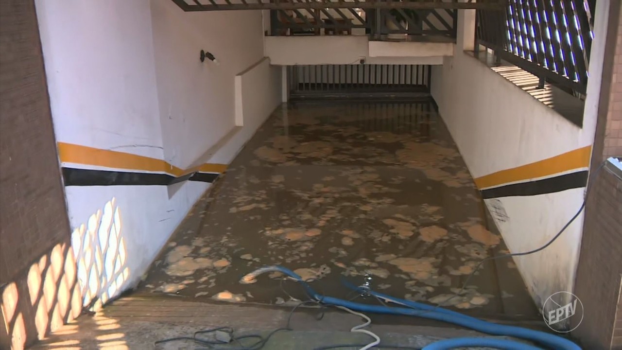 Pelo menos quatro carros e uma moto ficaram submersos após a garagem do subsolo do prédio em que estão estacionados ficar alagada na região central de Campinas (SP) nesta sexta-feira (20). De acordo com o síndico, o problema começou por volta de 4h30.