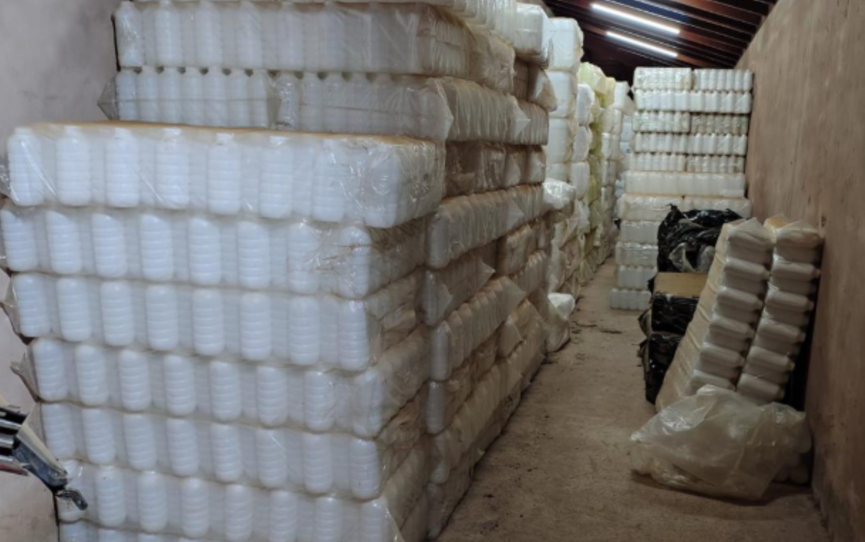 A operação do Gaeco ocorreu em quatro locais diferentes da cidade, incluindo uma chácara onde os agentes encontraram frascos, rótulos e tampas de produtos químicos já separados, embalados e prontos para serem vendidos ilegalmente.