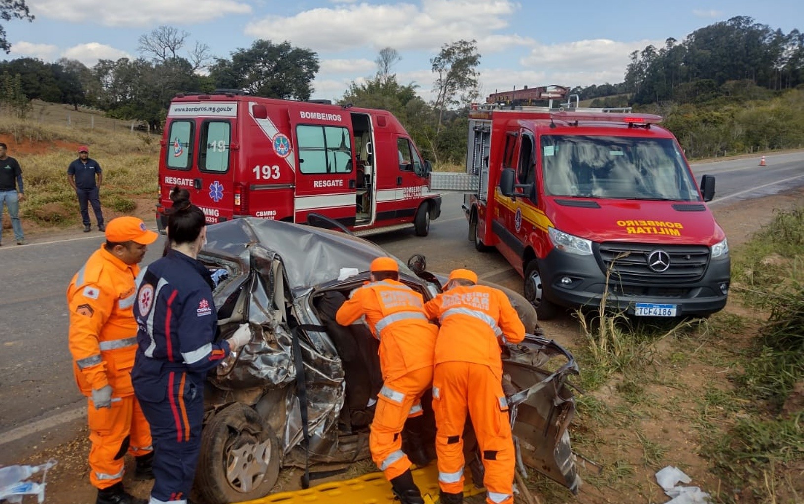 Ele foi resgatado pelos bombeiros com o uso de ferramentas de desencarceramento e encaminhado pelo Samu ao Hospital Samuel Libânio, em Pouso Alegre. A perícia foi acionada e a Polícia Militar Rodoviária permaneceu no local para controlar o tráfego.