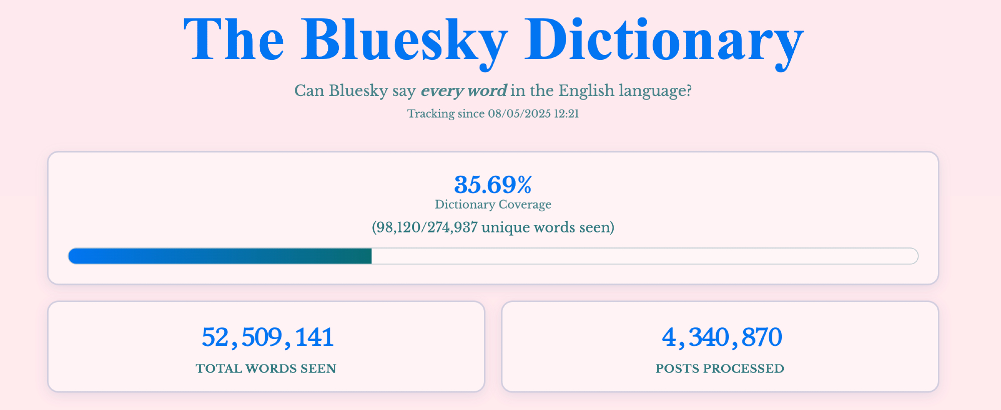 Paul Frazee 4 months ago We can do it everybody [www.avibagla.com/blueskydicti...](The Bluesky DictionaryThe Bluesky DictionaryCan Bluesky say every word in the English language? Well this is your chance to find out. ) https://morel.us-east.host.bsky.network/xrpc/com.atproto.sync.getBlob?did=did:plc:ragtjsm2j2vknwkz3zp4oxrd&cid=bafkreidr2wcnuly7lw5xiwx6dio5qpq2pdzu6z7cfbkmcurm26uhix4lfe