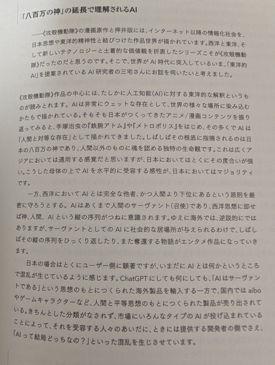 ウヒロイド 5 months ago 士郎正宗の世界展で論考・インタビュー集を購入したのだが、なかなか面白い。画像はAIにおける西洋と東洋の違いについて。 GyazoGyazoGyazo is the easiest way to record screenshots & videos you can share instantly. Save time with async visual communication that's effortless and en... GyazoGyazoGyazo is the easiest way to record screenshots & videos you can share instantly. Save time with async visual communication that's effortless and en...