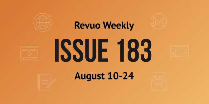 RevuoXMR 2 years ago We're pleased to share Revuo #Monero Issue 183: August 10 - 24, 2023 is now available! Revuo MoneroIssue 183: August 10 - 24, 2023Weekly and Quarterly Monero Newsletter