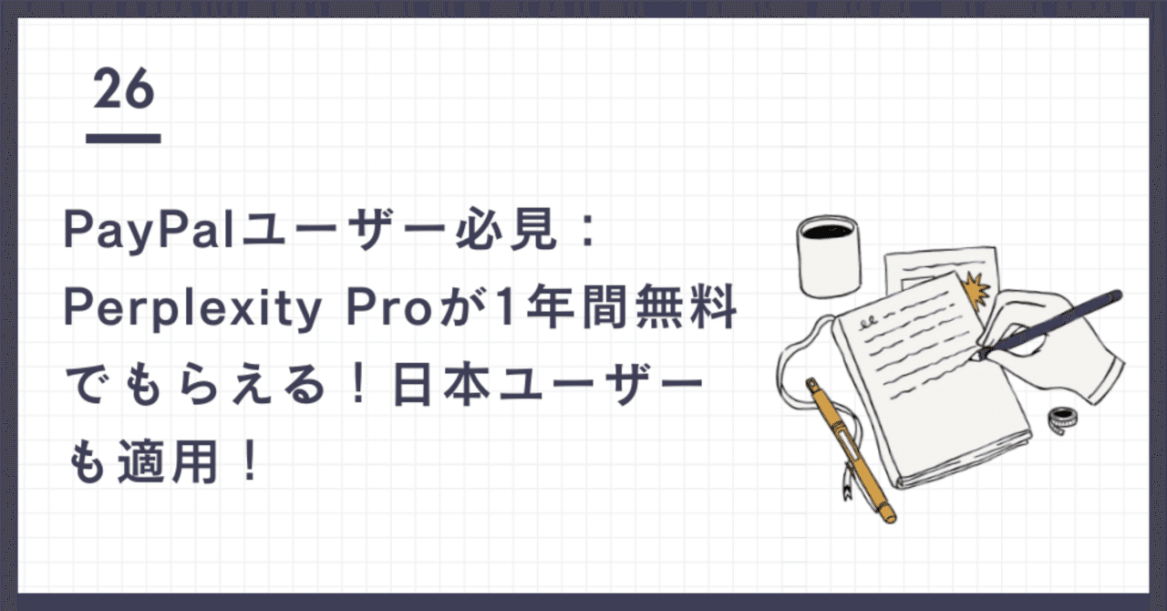makura 3 months ago note(ノート)PayPalユーザー必見:Perplexity Proが1年間無料でもらえる!日本ユーザーも適用!🎉|Chang | AI Solution Architect要点まとめ PayPal/Venmo と Perplexity AI が提携。Perplexity Pro(年額$200相当)を12か月無料で提供し、AIブラウザ ...