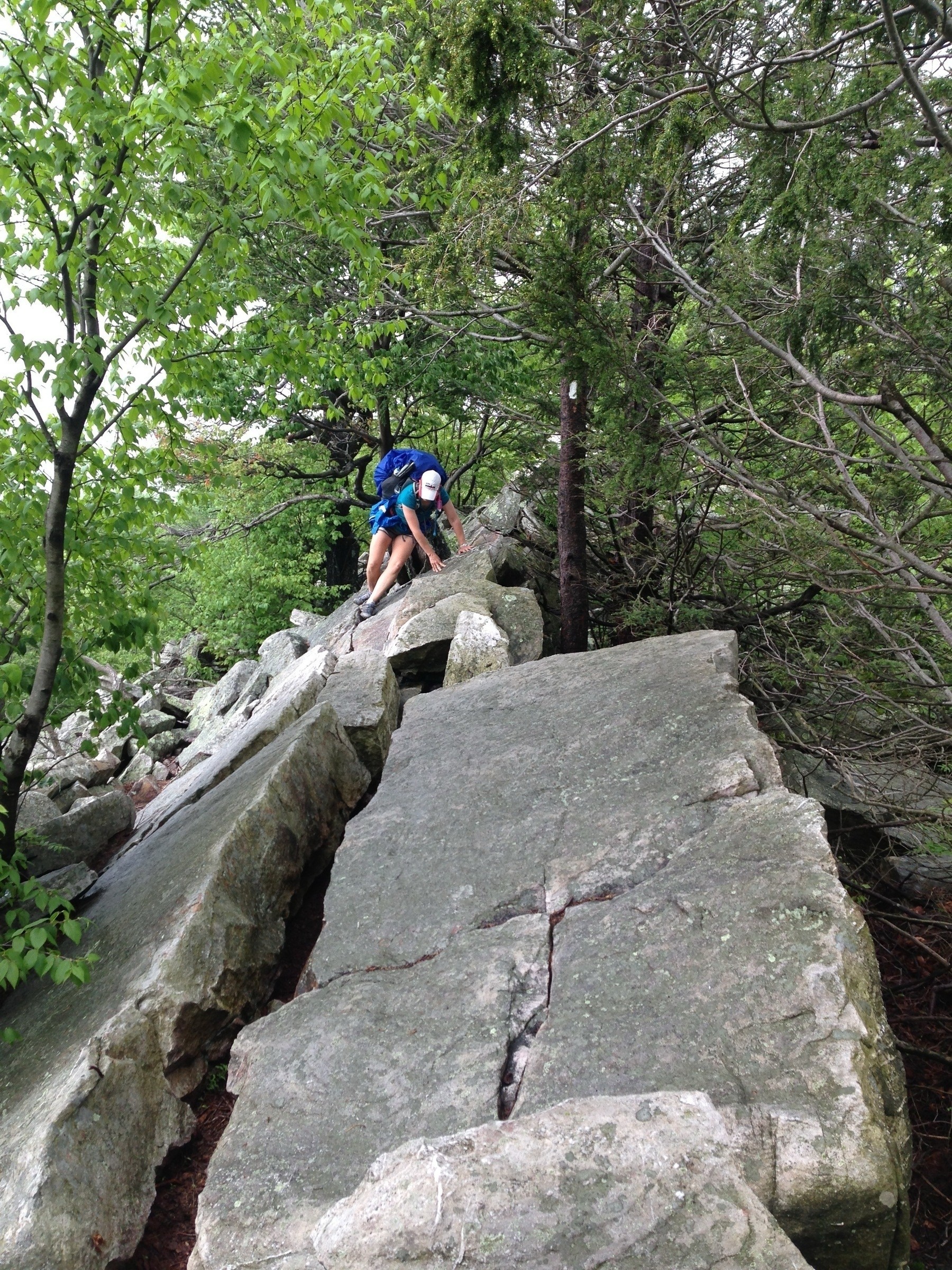 This is one of many stretches of the Appalachian Trail known as The Knifeâs Edge. Itâs in eastern Pennsylvania, a day south of the Lehigh Gap. For about a mile, you have to put your hiking poles away and maintain three points of contact to traverse it. #hiking - https://amerpie.lol/2025/05/20/another-k... social.lol