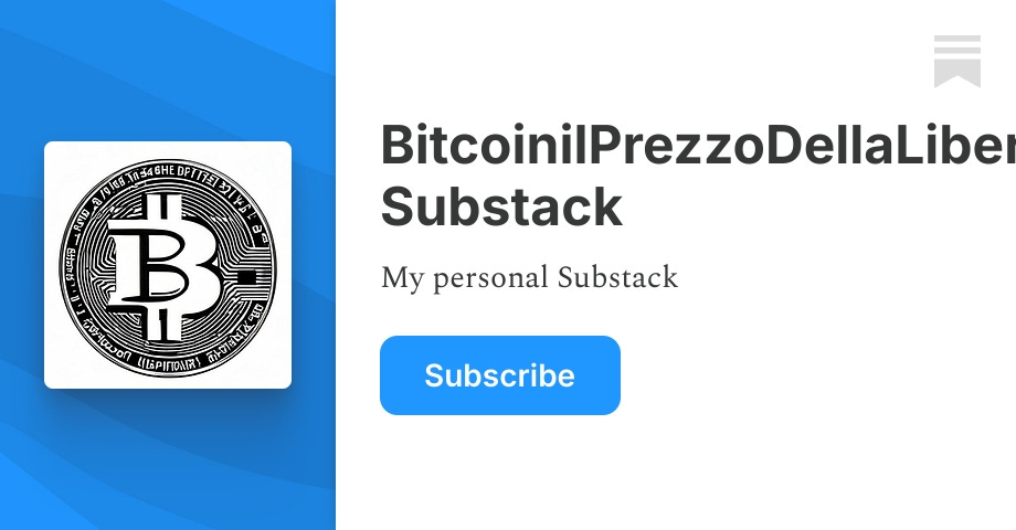 ₿aldo⚡️ 2 years ago BitcoinilPrezzoDellaLiberta’s Substack | SubstackMy personal Substack. Click to read BitcoinilPrezzoDellaLiberta’s Substack, a Substack publication. Launched 2 years ago.