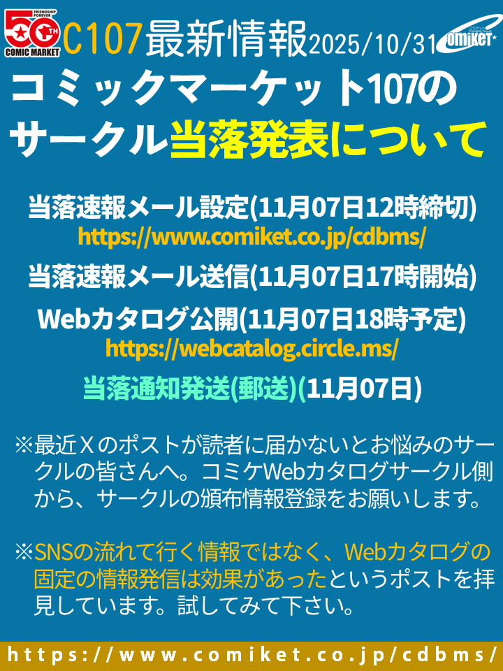 柊芳樹:verify: 1 month ago :ablobcatfloofpat: X (formerly Twitter)コミックマーケット準備会 (@comiketofficial) on X当落速報メール設定は11月7日12時締切。 その後、夕方に当落速報メール送信・Webカタログ公開となります。ま... RE: Misskey.io丑露ムキC1072日目I01b (@ushiromuki)勝手に5日だと勘違い RN: 7日らしい RN: 冬の当落いつだっけ View quoted note →