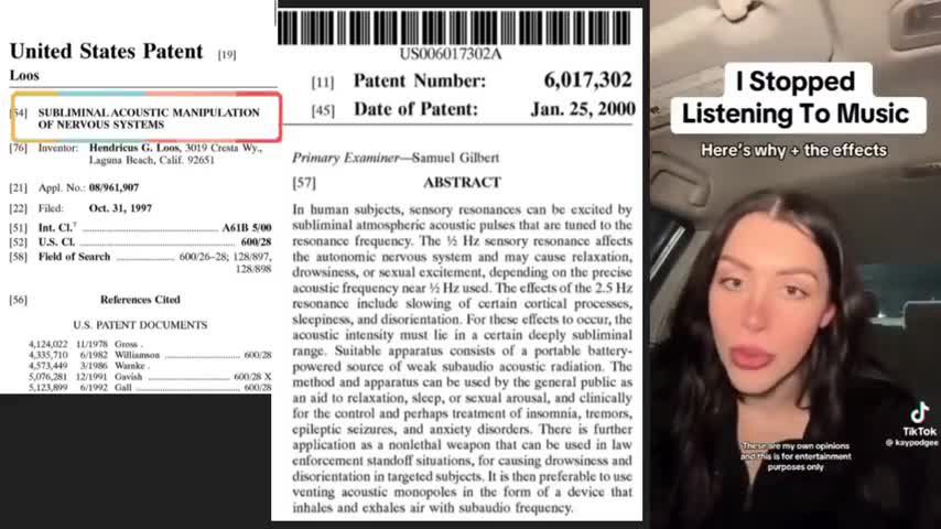 SUBLIMINAL ACOUSTIC MANIPULATION OF NERVOUS SYSTEMS - MANIPULATION THROUGH MUSIC PATENT