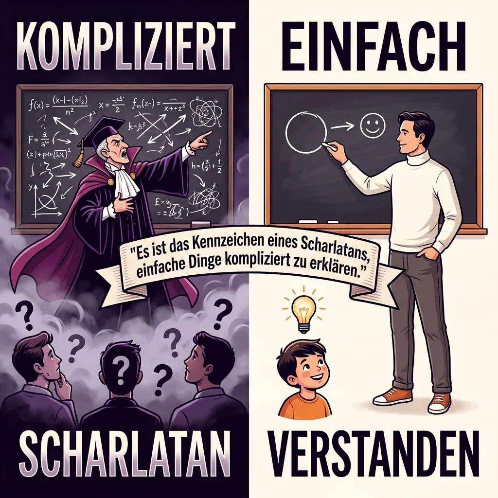 Eine Illustration zum Thema echte vs. falsche Expertise. Inspiriert von Richard Feynman: Wer einfach erklären kann, hat wirklich verstanden.